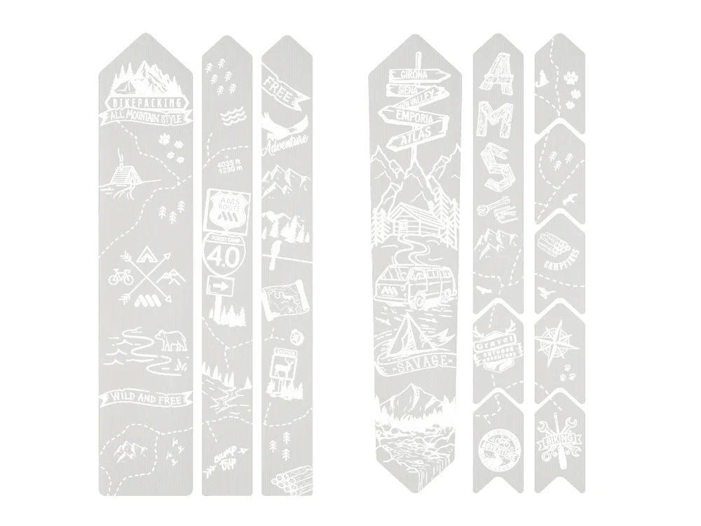 Transparent BIKEPACKING and adventure themed AMS Frame Guard for Gravel and Road bikes.