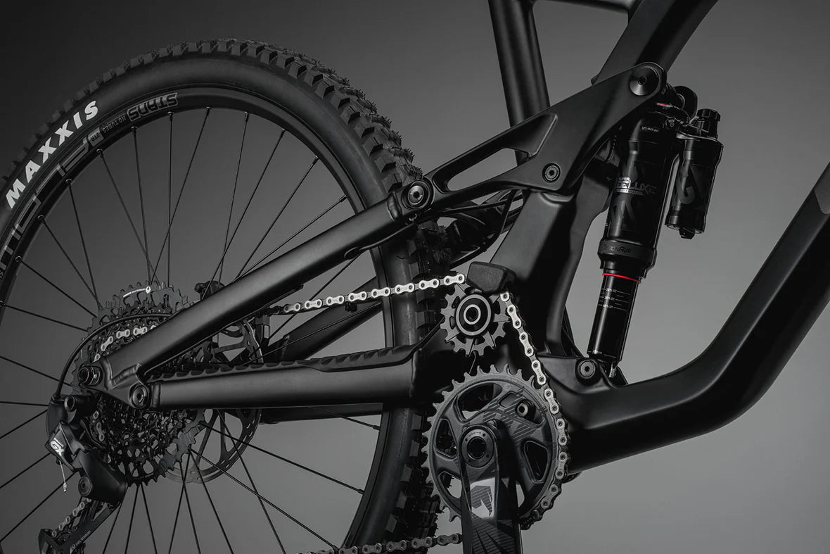 • Ruckus Management: Integrated chain guide and chainstay protection keep the bike quiet and focused during rough conditions.