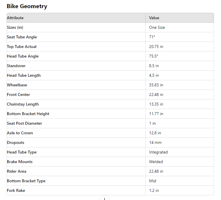 - Bottom Bracket: Sealed Mid 22mm