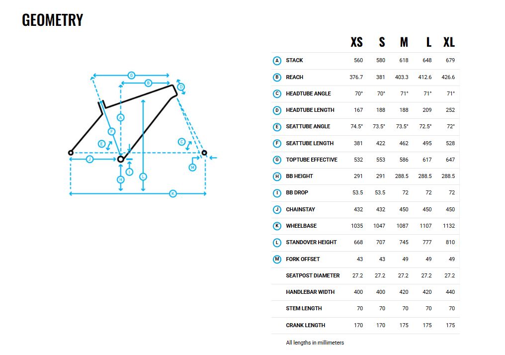 • Size-Specific Wheel Sizing – XS and S use 650B wheels, while M, L, and XL use 700C for proper handling across all sizes.
