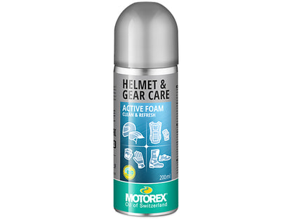 Motorex Helmet Care Active Foam is a versatile cleaning and deodorizing spray designed to freshen up helmets and various types of protective gear, including gloves, ice hockey gear, boxing gloves, riding boots, and more. This easy-to-use product helps to maintain your gear by cleaning it gently and effectively.