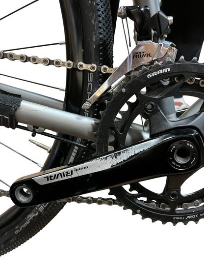 The SRAM Rival HRD hydraulic disc brakes with 160mm front and 140mm rear rotors deliver superior stopping power and control in all weather conditions.