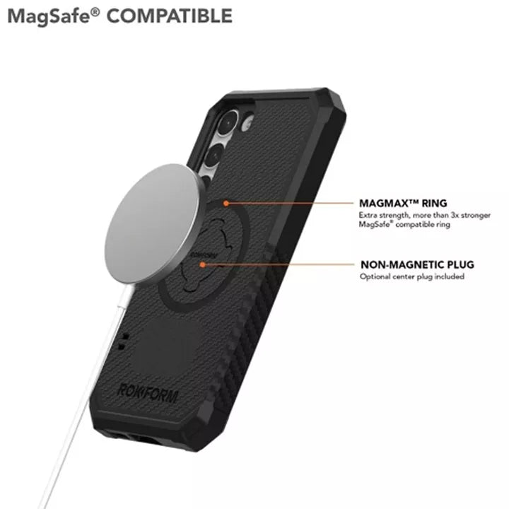 Our best-selling Samsung Rugged case is better than ever for the new Galaxy S23. Now with an integrated MAGMAX™ magnet system compatible with all MagSafe accessories. Now you can enjoy MagSafe convenience with your new S23+ and 3x more magnetic hold than ever before. Transform your S23 from a great phone into a powerhouse of functionality while keeping it safe from damage inside the brand new ROKFORM S23 Rugged case.