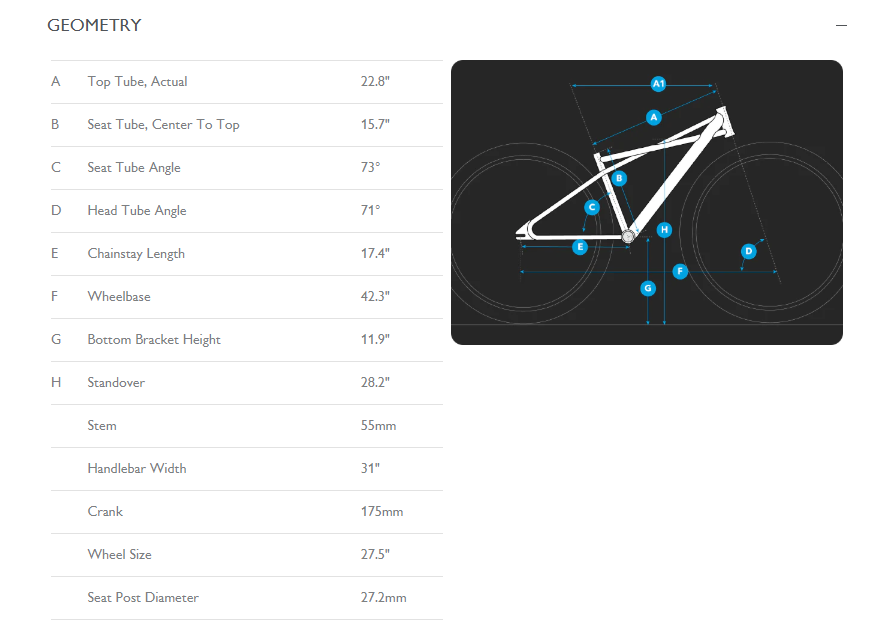 Tires: Vee x SE Speedster 27.5” x 2.5”, 72TPI