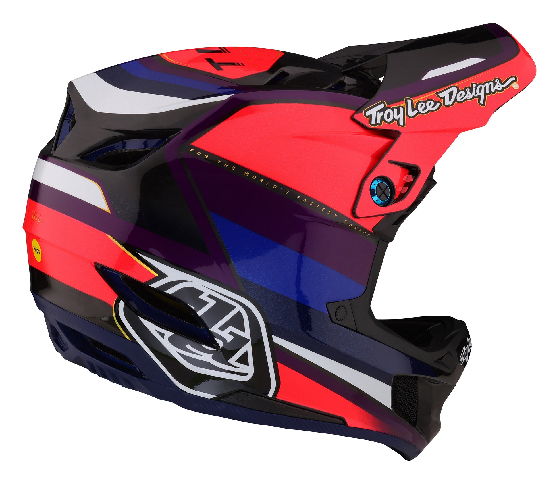 The Daytona helmet series redefined the marriage between technology, safety and artistic design. The Troy Lee Designs D4 Carbon Helmet changed the game once again. We were able to strategically increase strength and durability while keeping the overall weight to a premium. This model also features integrated MIPS Brain Protection System, lightweight titanium D-rings, a collarbone suspension system and quick release XT2 3D cheek pads and Ionic washable liner.