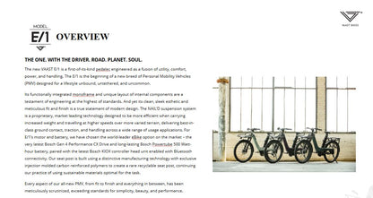 Experience the future of cycling with the Vaast E/1 e-bike, an exceptional personal mobility vehicle designed for both comfort and performance. Featuring the innovative NAILD suspension system, this bike delivers a smooth ride over various terrains, allowing you to tackle your daily commutes or weekend adventures with ease.